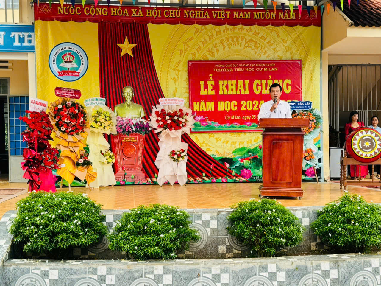 Về dự lễ hai giảng của nhà trường Ông Đỗ Duy Toại – Huyện uỷ viên- Bí thư Đảng uỷ xã Cư MLan, đọc toàn văn thư của Chủ tịch nước Cộng hoà xã Hội chủ Nghĩa Việt Nam và thay mặt Đảng uỷ, Hội đồng nhân dân, uỷ ban nhân dân, uỷ ban mặt trận tổ quốc Việt Nam xa tặng lững hoa tươi thắm và phần quà rất ý nghĩa cho tập thể nhà trường.